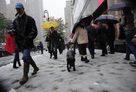 وبلغت سماكة الثلوج السبت سبعة سنتيمرات في سنترال بارك في نيويورك ليكون اول تساقط للثلج في تشرين الاول على المدينة منذ العام 1835.